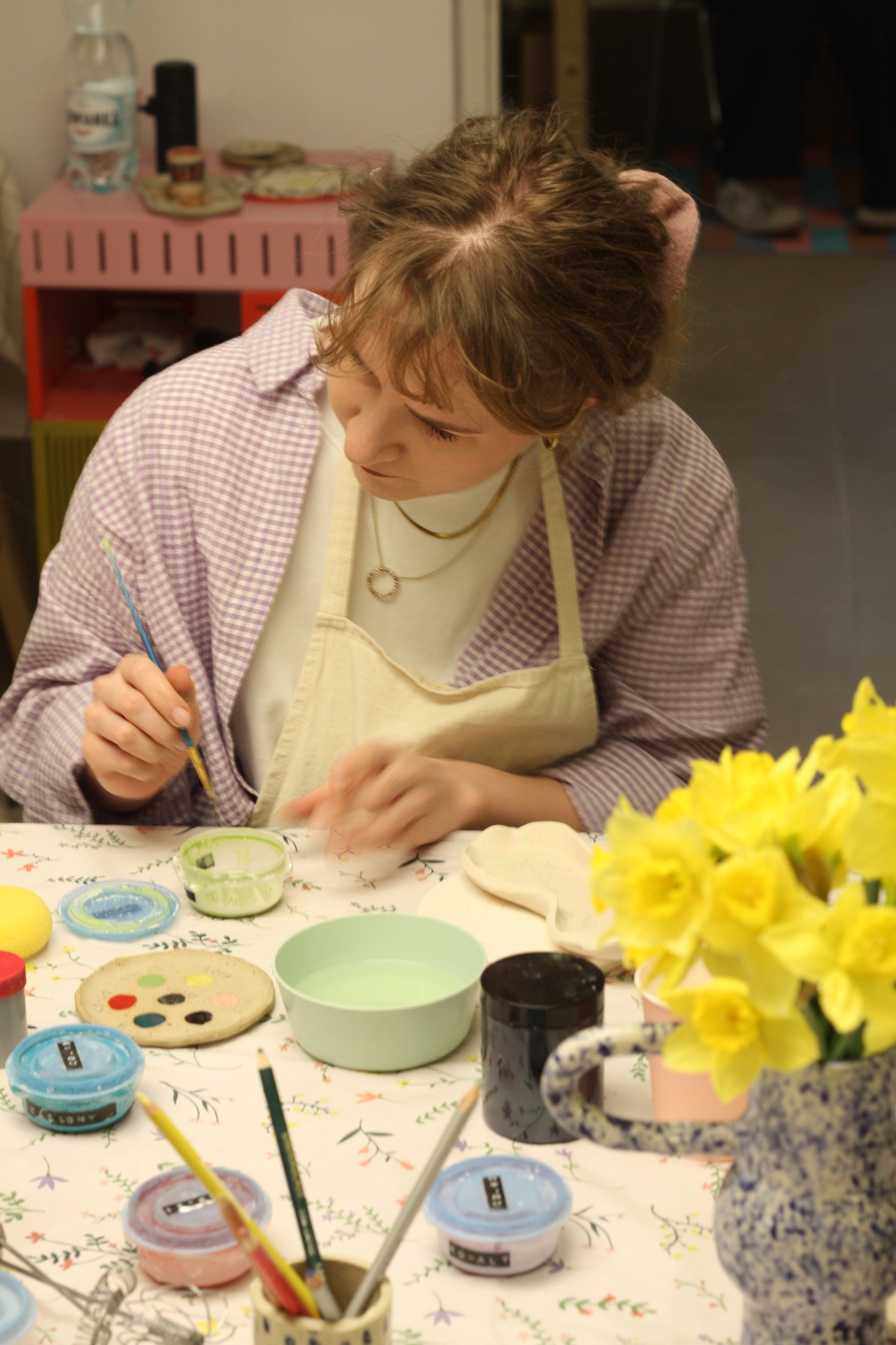 Ubrać się w wygodne, niekrępujące ruchy ubrania. Pomocnym może być też skrócenie paznokci. W pracowni są dostępne fartuchy, aby się nie pobrudzić.